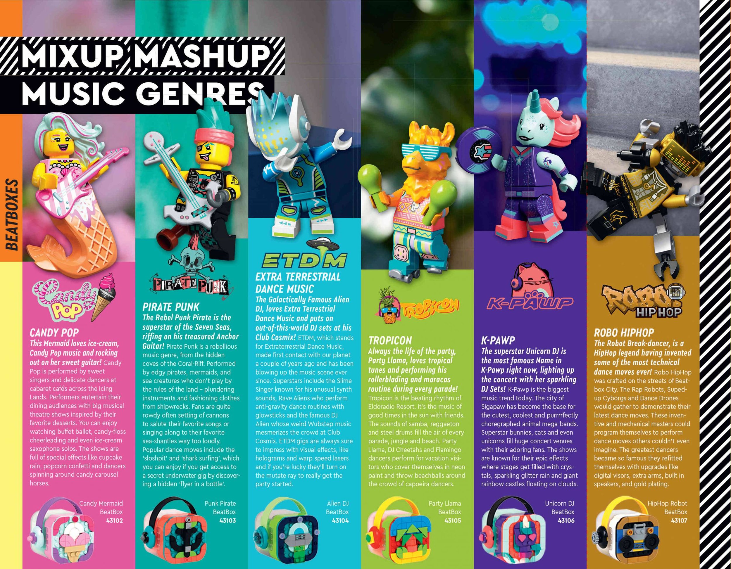 Beat Boxes (at $20 USD) that include a band member minifig, more than a dozen BeatBits, and a pod that acts as a carrying case and stage.