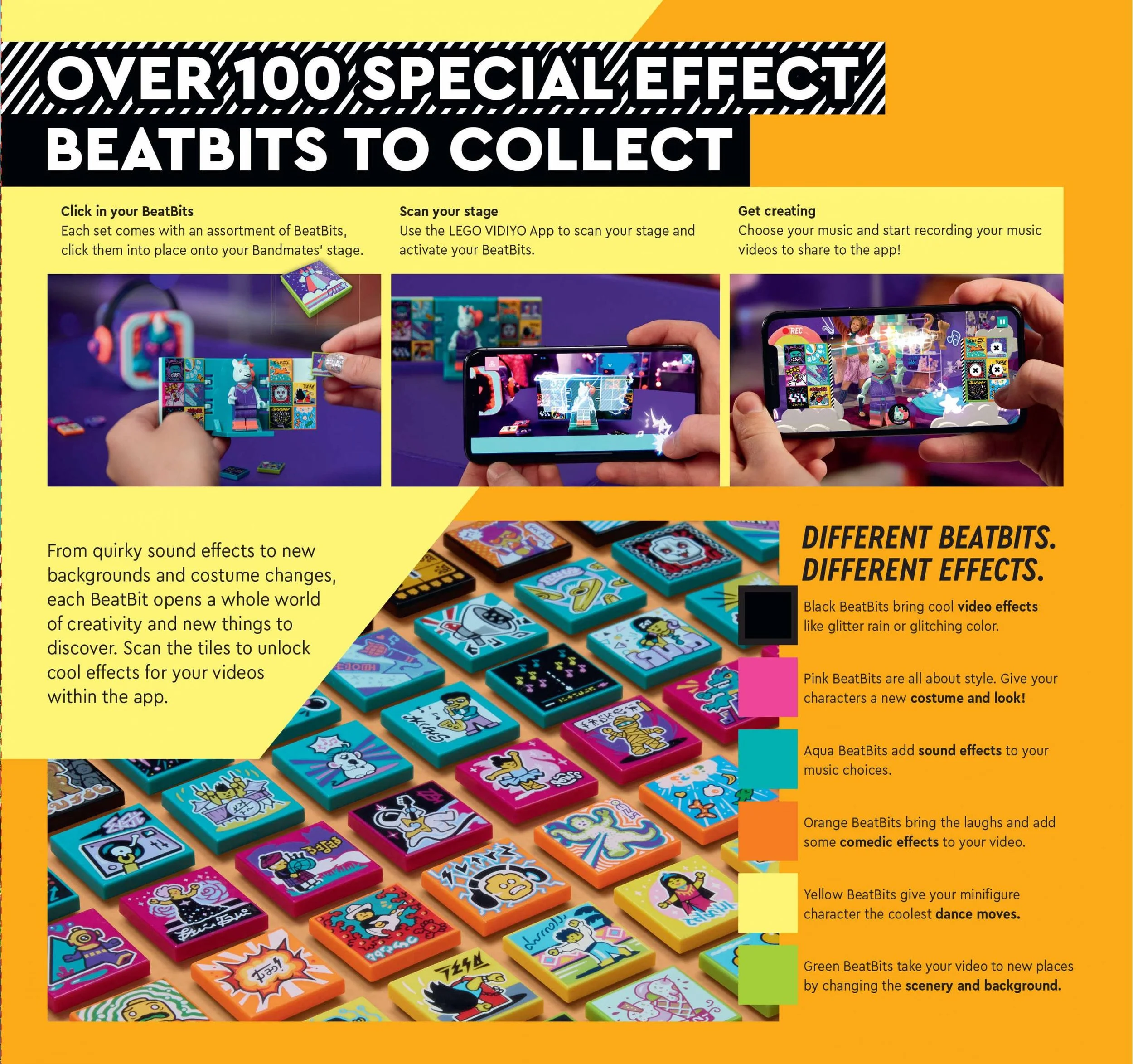 You need at least an Android or iOS device with the free Vidiyo mobile app installed. The app lets you select a single virtual minfig to get started. Each week sees a new set of randomized free-to-use BeatBits, AR-enabled tiles that unlock new sights and sounds for your videos. Beyond that, you need to get physical sets to scan.